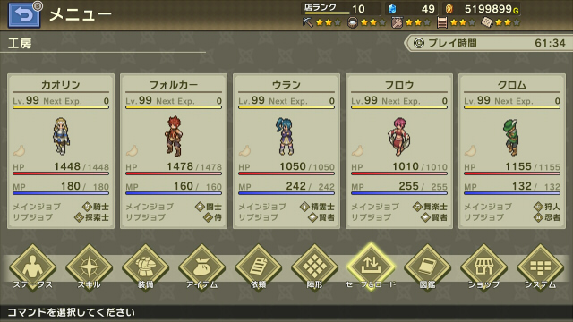 技の回数制限と反撃やクリティカルといった運要素が無いのと敵が序盤から攻撃力高いので戦略性は高め。