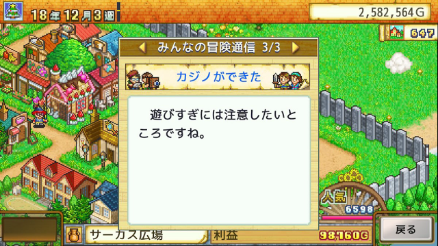 16年目間で街のランクや人気を上げたりクエストをこなしたりしてスコアを伸ばしていくのが一応の目的。